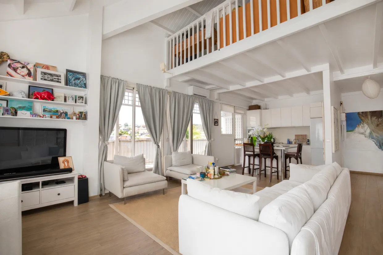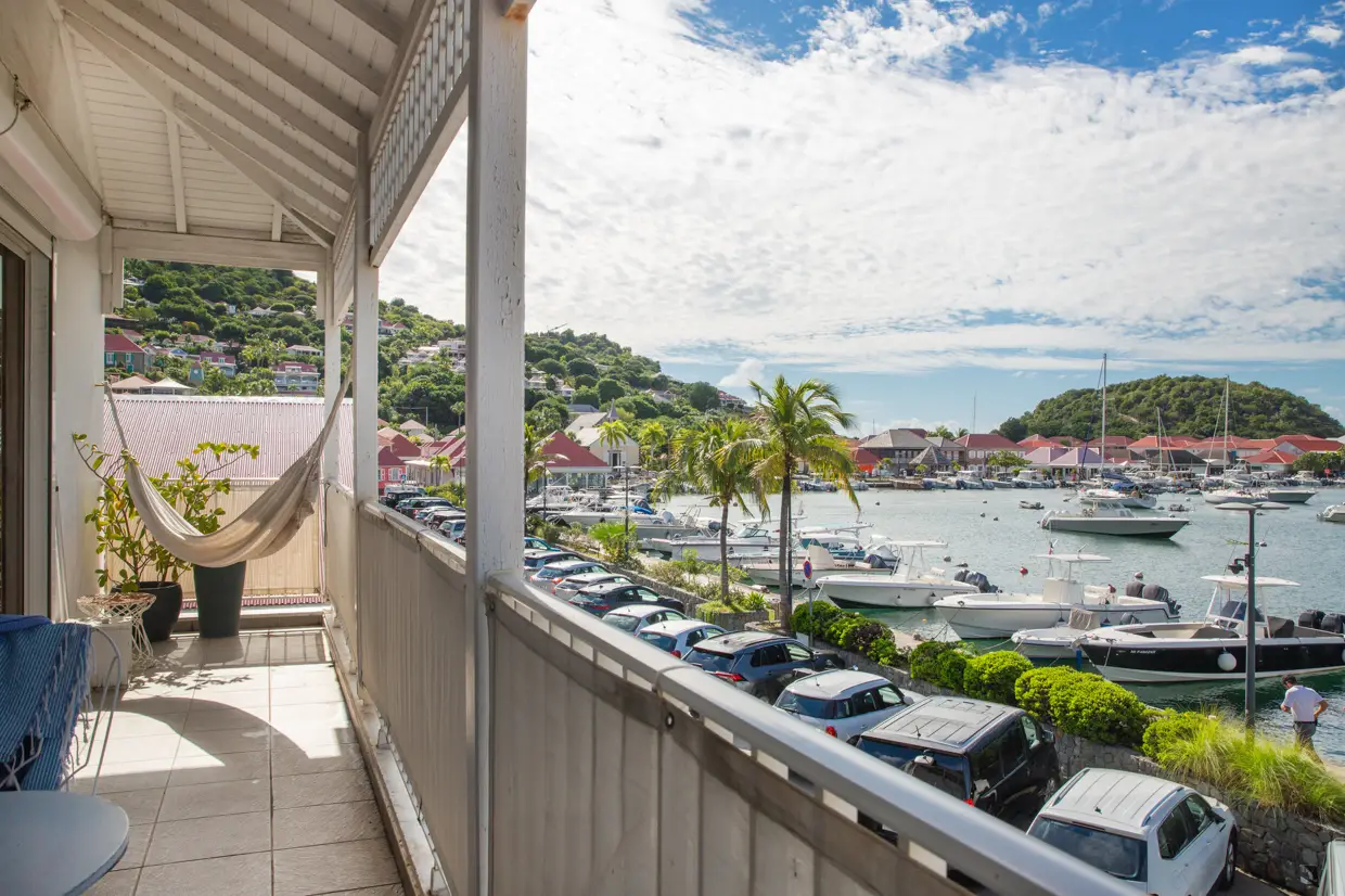 It enjoys a direct, front-row view over Gustavia’s marina, the docks and the yachts. Warm and filled with natural light, the main level offers a welcoming living area with a fully equipped kitchen, a dining nook, and a terrace perfect for relaxing or entertaining. A staircase leads to the mezzanine level, where you’ll find a comfortable bedroom with an en-suite bathroom. Practical details: the property is currently occupied by a tenant, with a lease valid through the end of November 2026.