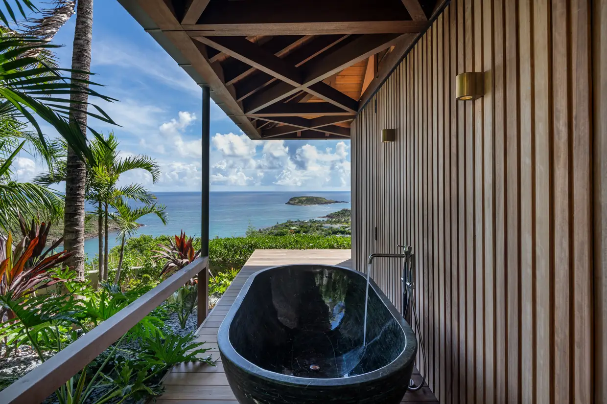 Overlooking Marigot Bay, this majestic property enjoys a rare, almost suspended position. The view is immediate, frontal, and breathtaking.