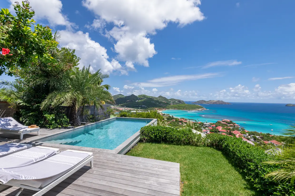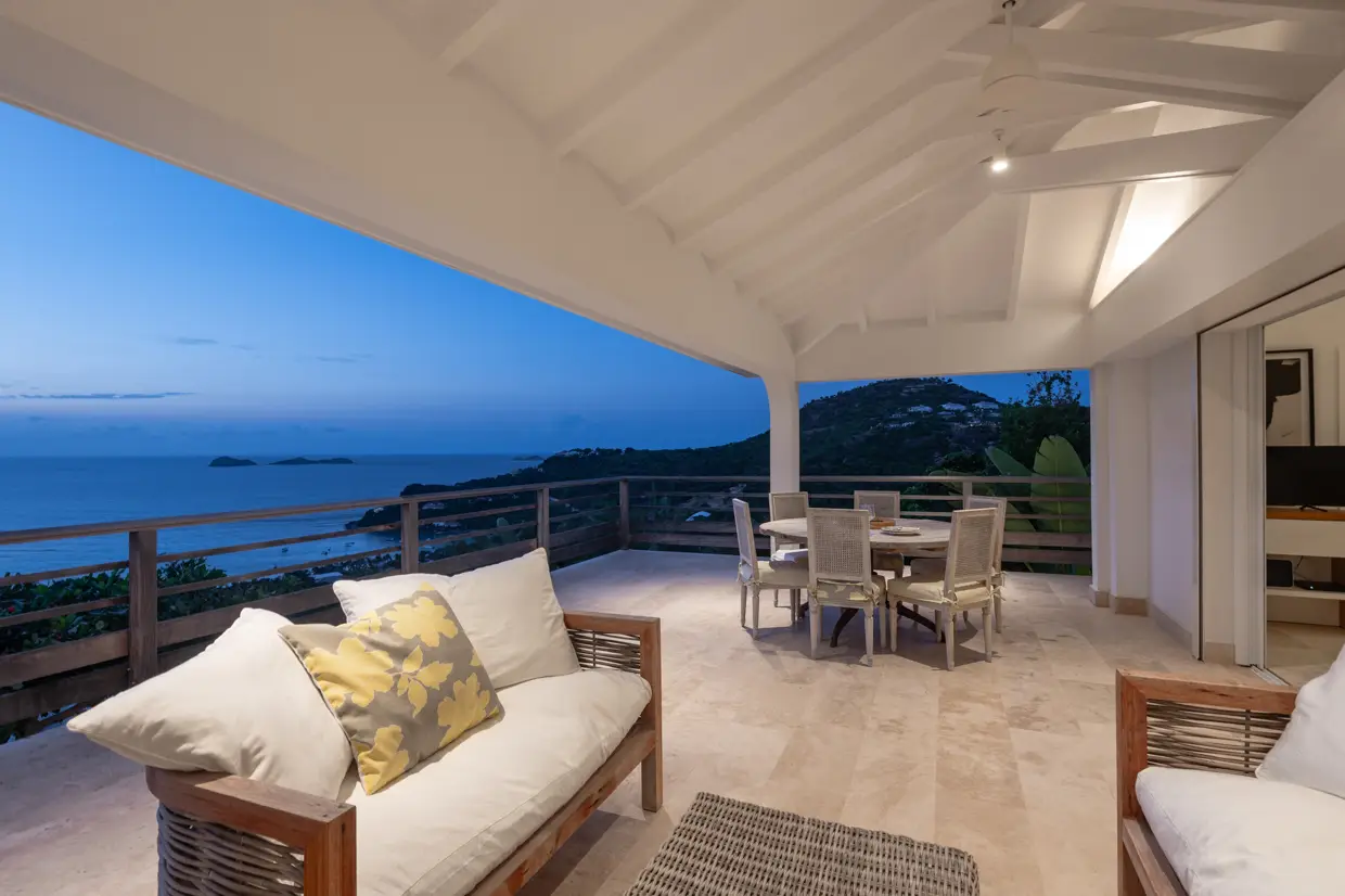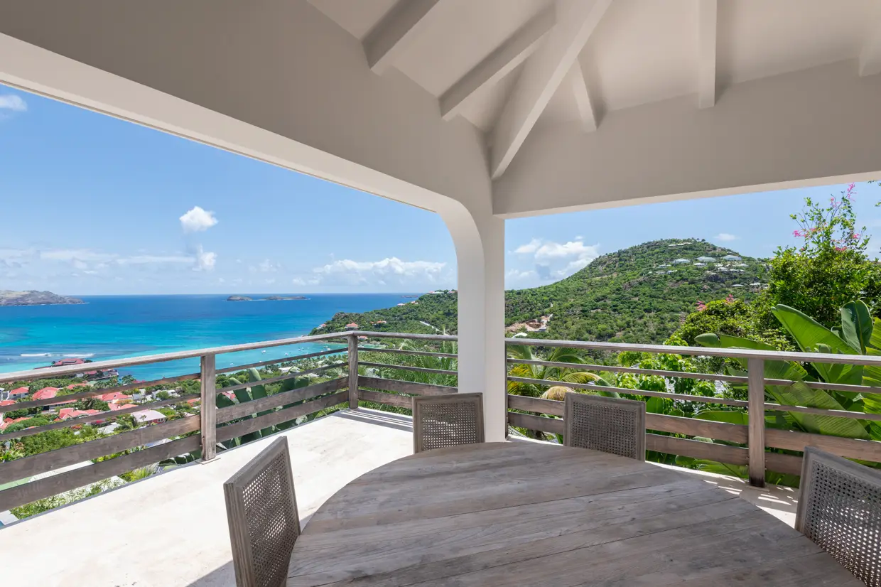Located on the heights of Saint Jean, one of the most sought-after neighborhoods on the island, Villa Maéva offers a panoramic view of the bay and the ocean, with the small islets as a scenic backdrop. It enjoys a location that is both central and peaceful, just minutes from the beach, restaurants, numerous shops, and the iconic Eden Rock hotel.