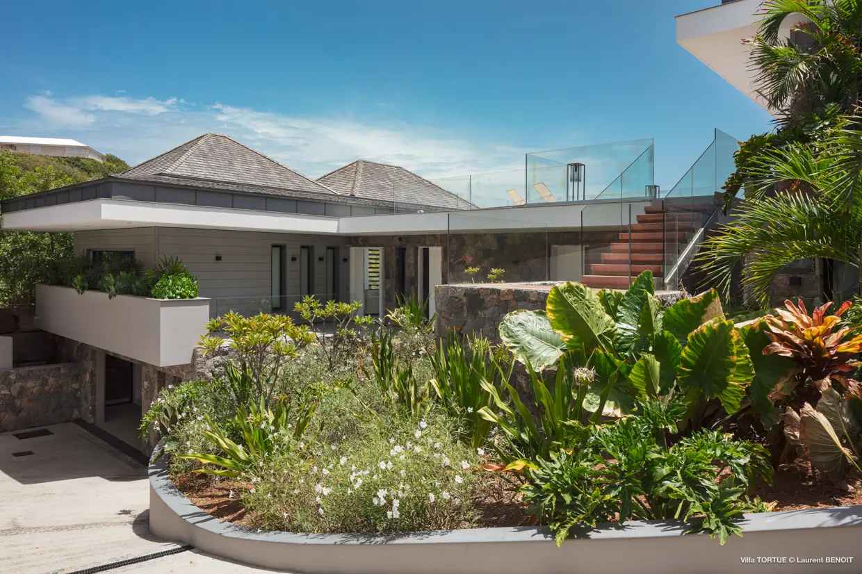 Located in Marigot, tucked away from view, Villa Tortue enjoys a stunning panorama of the protected bay, with the ocean and Tortue Islet, for which it is named, as a backdrop.
